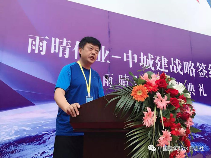 簽約儀式結束,湖北上德偉創防水工程有限公司的總經理李偉代表客戶進行了講話,他說自與雨晴合作以來,雨晴集團給了所有客戶在價格、質量、服務等全方位的支持,讓其切實感受到了雨晴集團始終將客戶的利益放在第一位,想客戶所想,急客戶所急,認為這就是雨晴的成功所在。