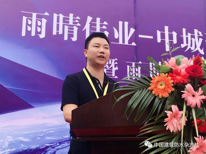 桂會長精彩的致辭及授牌贏得了熱烈掌聲,掌聲猶在耳旁回響的同時主持人請上了河南平輿防水協會會長褚立國上臺進行致辭,他表示,近年來雨晴集團非常的注重品牌塑造,打造雨晴自身獨特、優秀、強勢的企業文化,從廠區設施到員工服務無一不彰顯著雨晴特色文化。對于近年來雨晴所取得的成就進行了肯定,并表示雨晴在董事長李明臣的帶領下必定會成為宜昌地區乃至湖北地區的經濟和文化視窗,成為周邊乃至湖北省企業的表率和典范。